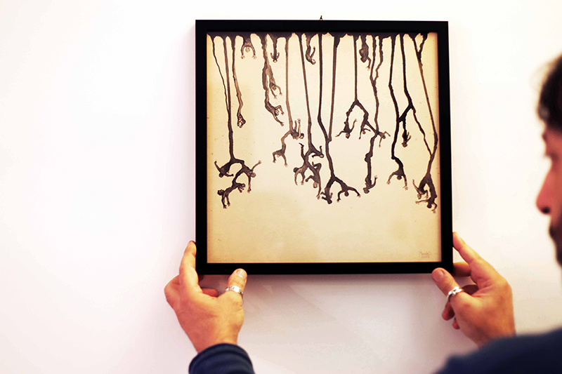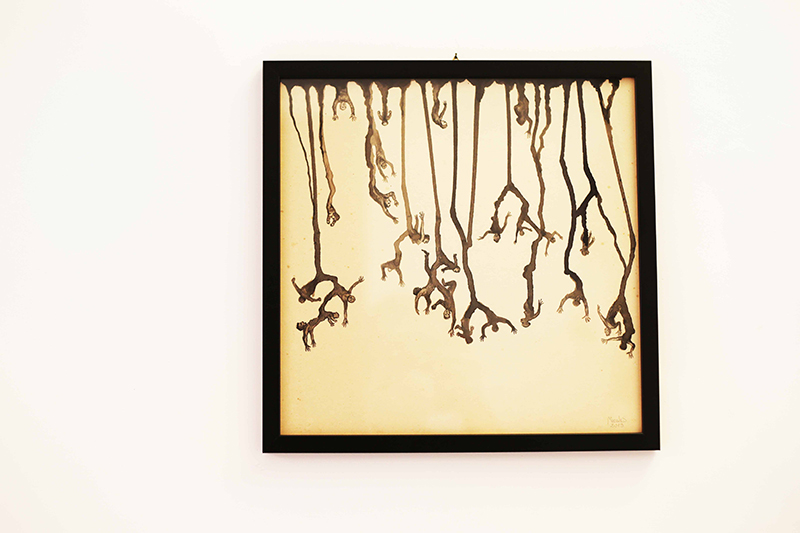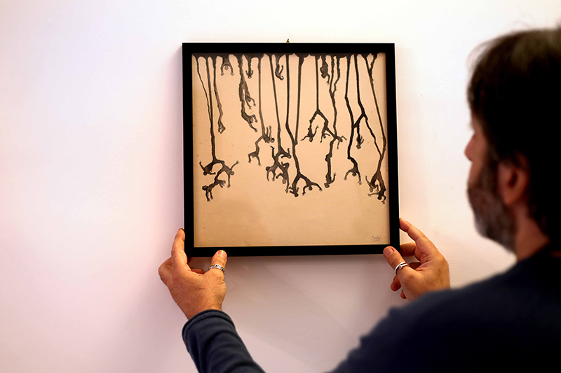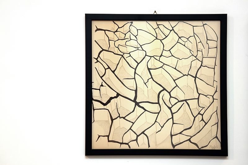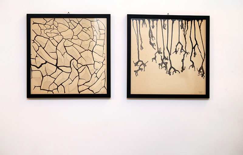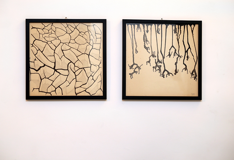 Dittico è composto da due disegni in inchiostro che ad una prima lettura visiva mostrano delle crepe e delle colature ma che poi, ad una più approfondita osservazione rivelano un contenuto più intenso. Le crepe per paradosso si trasformano in muri mentre le colature danno vita ad un affollamento di silouette che rappresentano gli annegati di un naufragio.